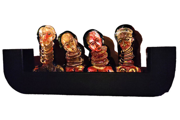 AB - 5 Atul Bakshi Shackled by faith, 2020 8 × 6 x 8.5 Inches Cast glass with copper inserts Price : On Request